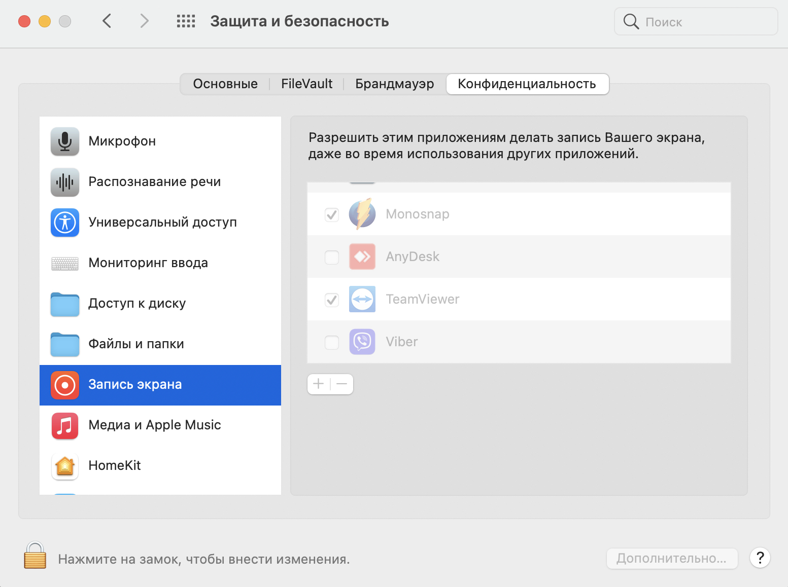 - Поставте галочки для ПО AnyDesk