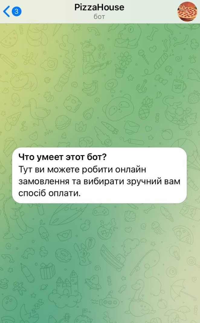 За допомогою цього додатку ви можете створити телеграм-бот. Ваші клієнти зможуть робити онлайн замовлення та вибирати зручний їм спосіб оплати.