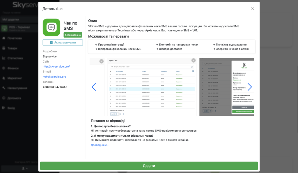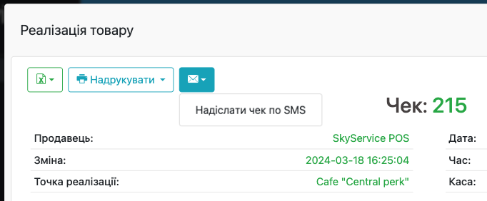 - При закритті чеку – активує можливість надсилання чека по SMS під час здійснення продажів