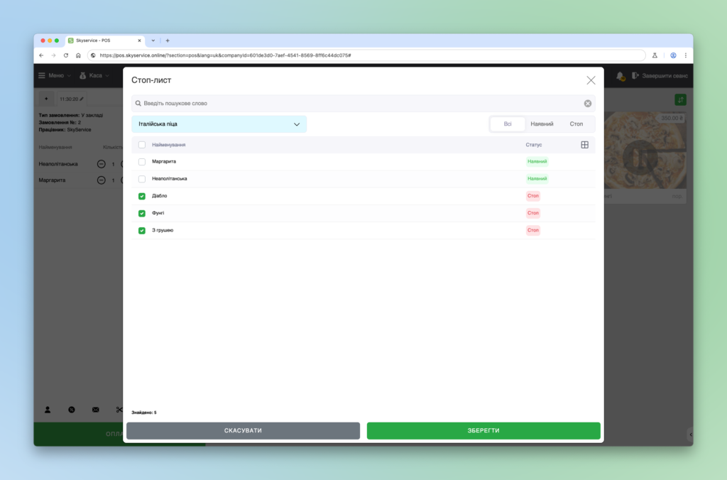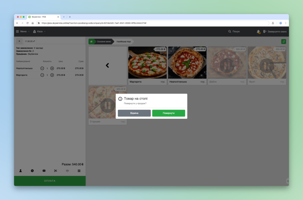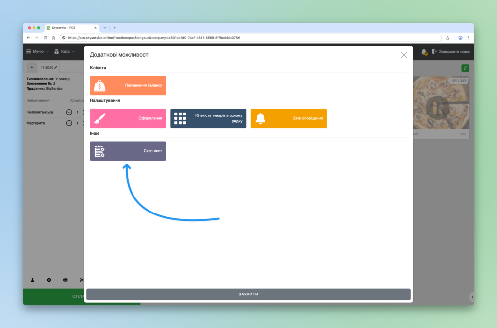 Стоп-лист — це інструмент, який дозволяє миттєво приховати страви чи товари з меню, якщо вони тимчасово недоступні.