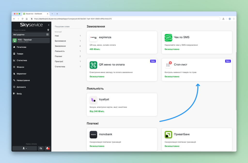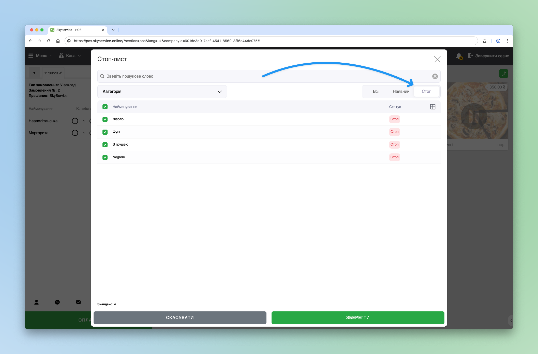❗️ Не забувайте переглядайте позиції, які мають статус Стоп – як тільки товар чи страва з’явиться на точці, змініть його статус на Наявний, щоб офіціанти змогли його продавати клієнтам.