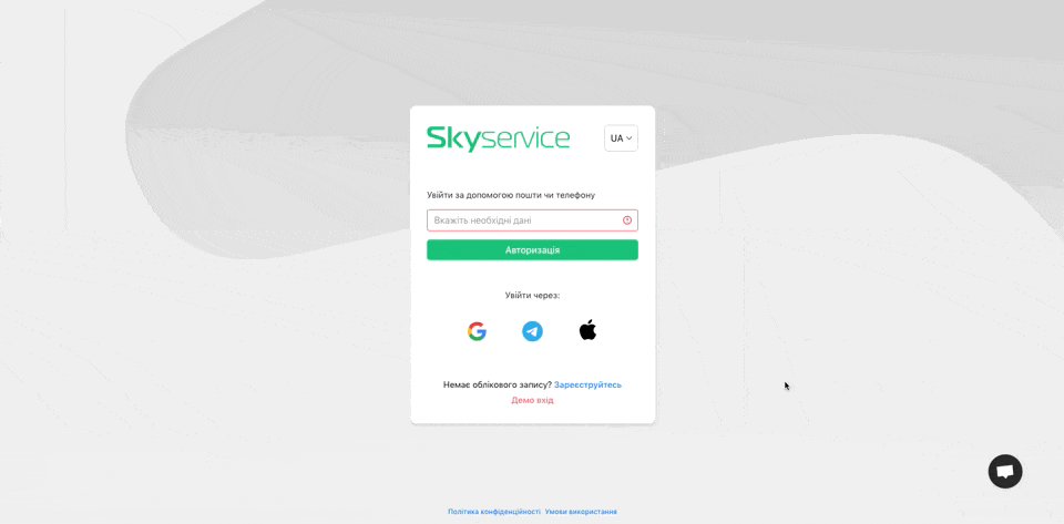 Ознайомитися без реєстрації Перейдіть на сторінку авторизації Натисніть Демо вхід Це демонстраційна версія для ознайомлення, якщо ж ви хочете повноцінно працювати в програмі, Вам необхідно зареєструватись в програмі Детальніше: Пов'язані уроки Особистий кабінет Зручний перехід до SkyService POS | Питання та відповіді Як змінити або скинути пароль Ознайомитися без реєстрації Реєстрація Популярні уроки Програмний РРО | Як почати роботу Налаштування принтера Xprinter Як зробити X- і Z-звіти Як налаштувати чековий принтер на Windows Помилки при роботі з пРРО | Як їх виправити