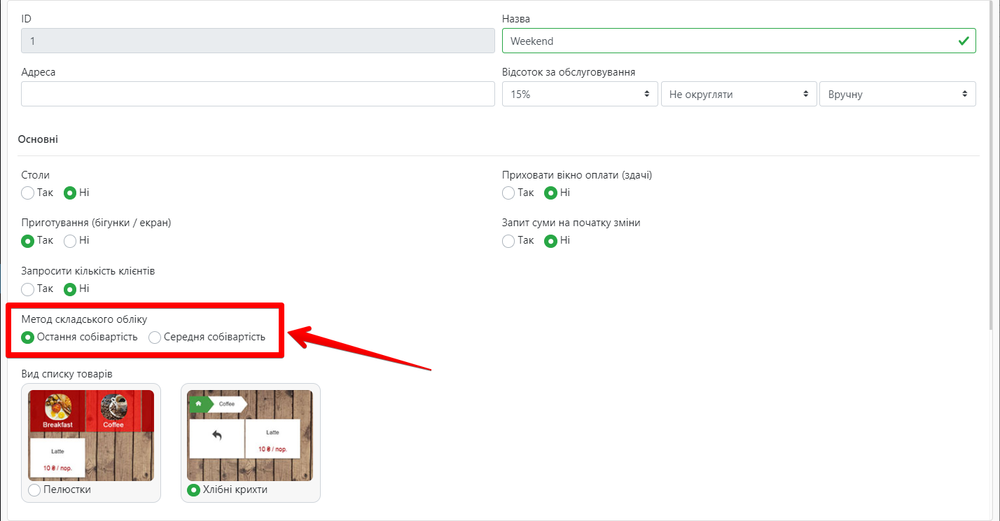 - У вікні редагуємо Метод складського обліку – обираємо метод який вам підходить: