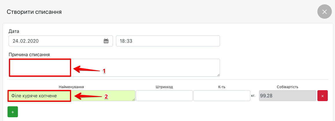 - Введіть Причину списання (не обов’язково)