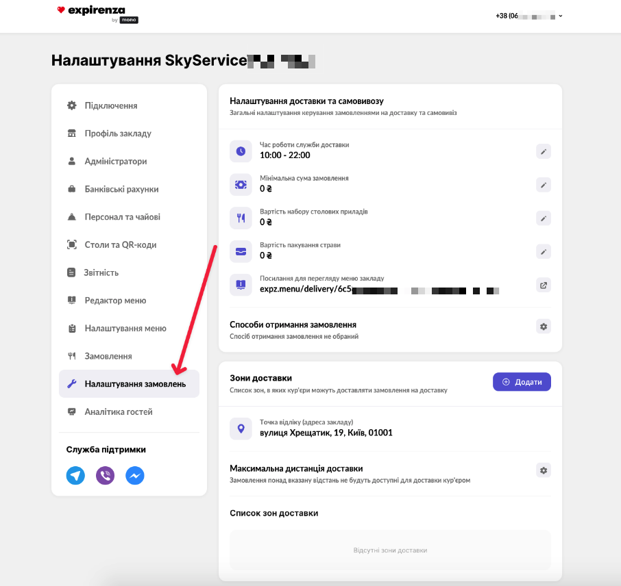 - За необхідністю активуйте обмеження доставки замовлень поза вказану відстань