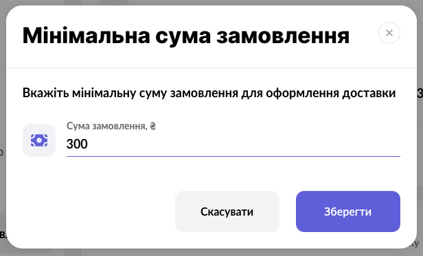 - Мінімальна сума замовлення