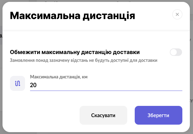 ❓ Як встановити максимальну дистанцію доставки