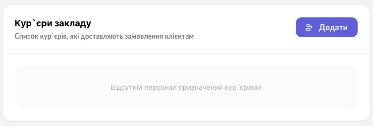 - У блоці “Кур’єри закладу” ви можете переглянути список кур’єрів, та додати кур’єра.