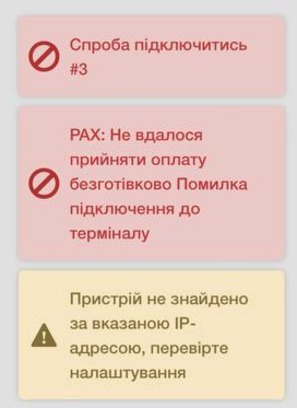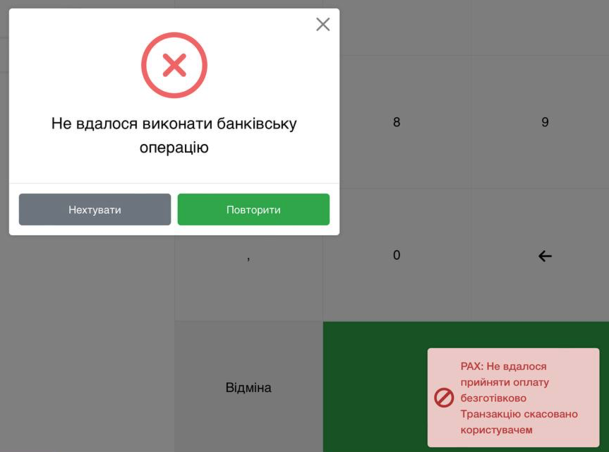 ☝🏻 Якщо на самому терміналі скасувати оплату, то в програмі будуть наступні повідомлення: