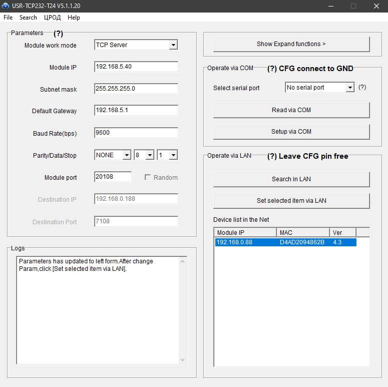 - Для налаштування IP-адреси на ваших вагах, потрібно завантажити та запустити додаток USR-TCP232-T24