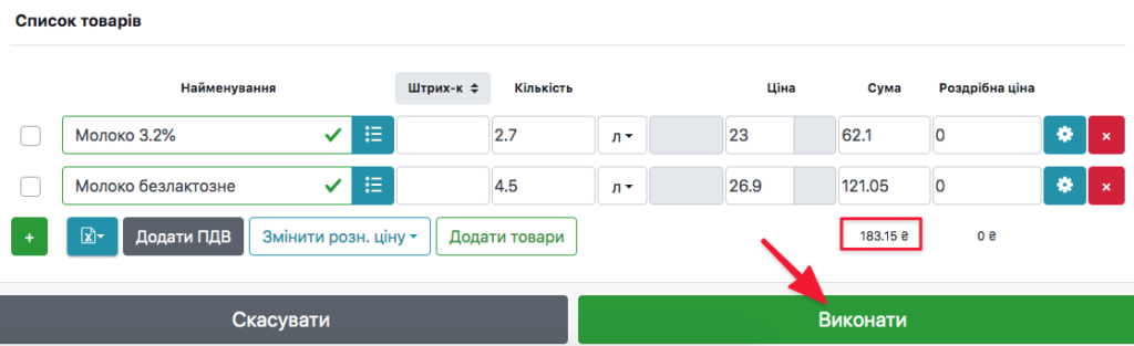 ☝️ Загальна сума оплати постачальнику буде розрахована по введеному значенню в колонці Ціна. Ціна – вказується за одиницю товару. Якщо розраховуєтесь одразу фіксованою сумою за усю кількість товару → введіть значення в колонку Сума, тоді ціна одиниці товару розрахується автоматично. І надалі в статистиці вона буде використовуватись як Собівартість товару.
