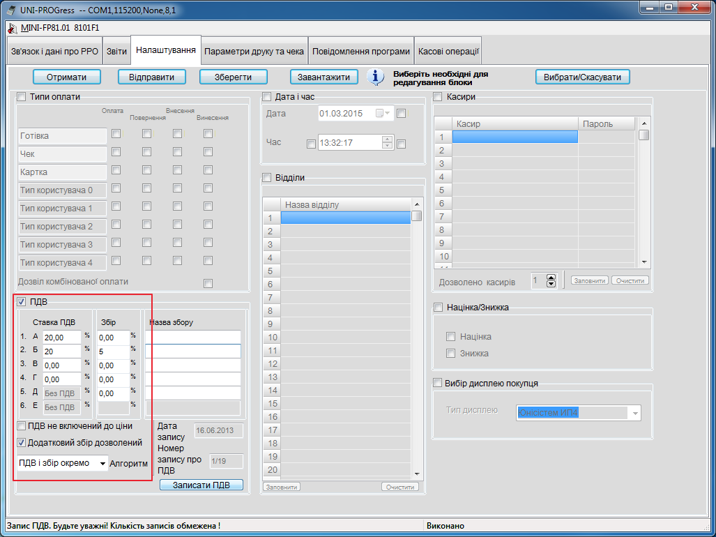 - Якщо фіскальний реєстратор підключився, побачимо у вікні всю інформацію про нього.