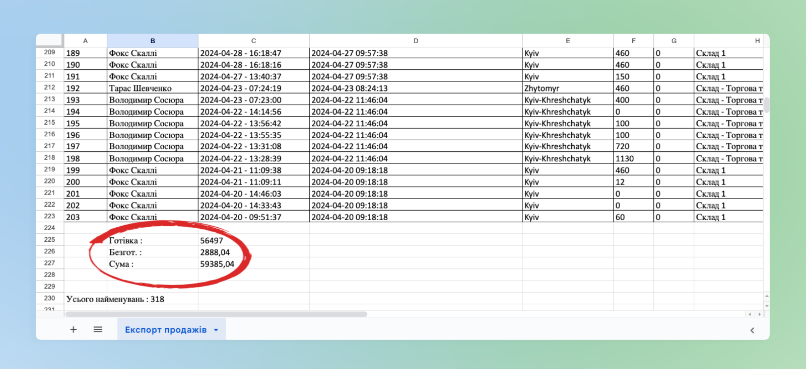 - Нижче буде відображатися список продажів ➜ вивантажте повний список на одну сторінку натиснувши знизу Всі