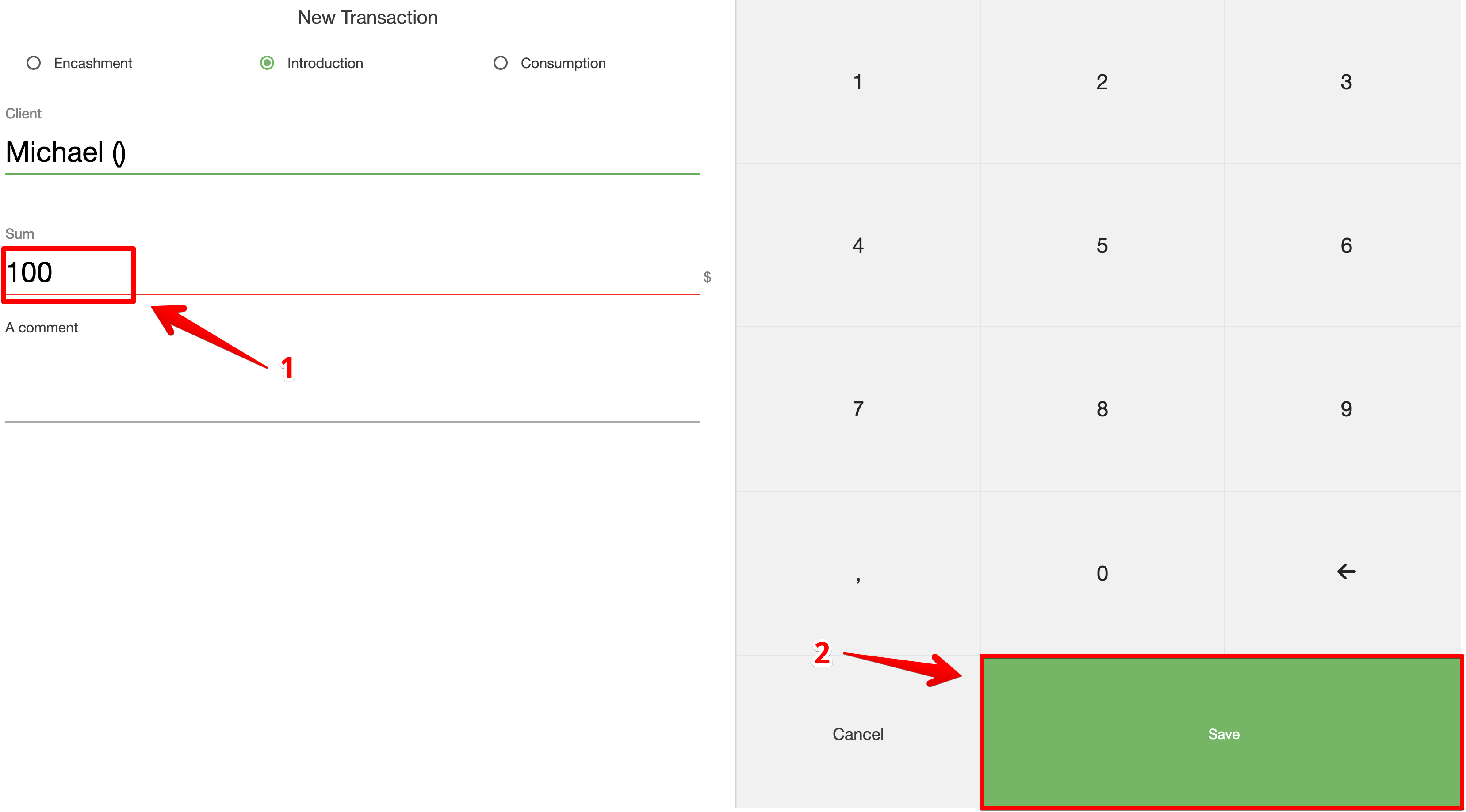 客户债务偿还 转到收银台并点击新交易(在屏幕的左上角): 在打开的新交易窗口中,点击:1. 存款2. 按现场客户(债务偿还) 在打开的客户窗口中,选择您要偿还其债务的客户 输入所需的现金金额,然后点击保存 Read more: Related lessons 如何创建交货收据? 如何打印前院? 如何退出终端 费用——工资、收货、租金 客户债务偿还 Popular Lessons 如何制作 X 和 Z 报告 FAQ | 问题与解答 登记 如何添加产品(件) 不同类型活动的工作流详细示例