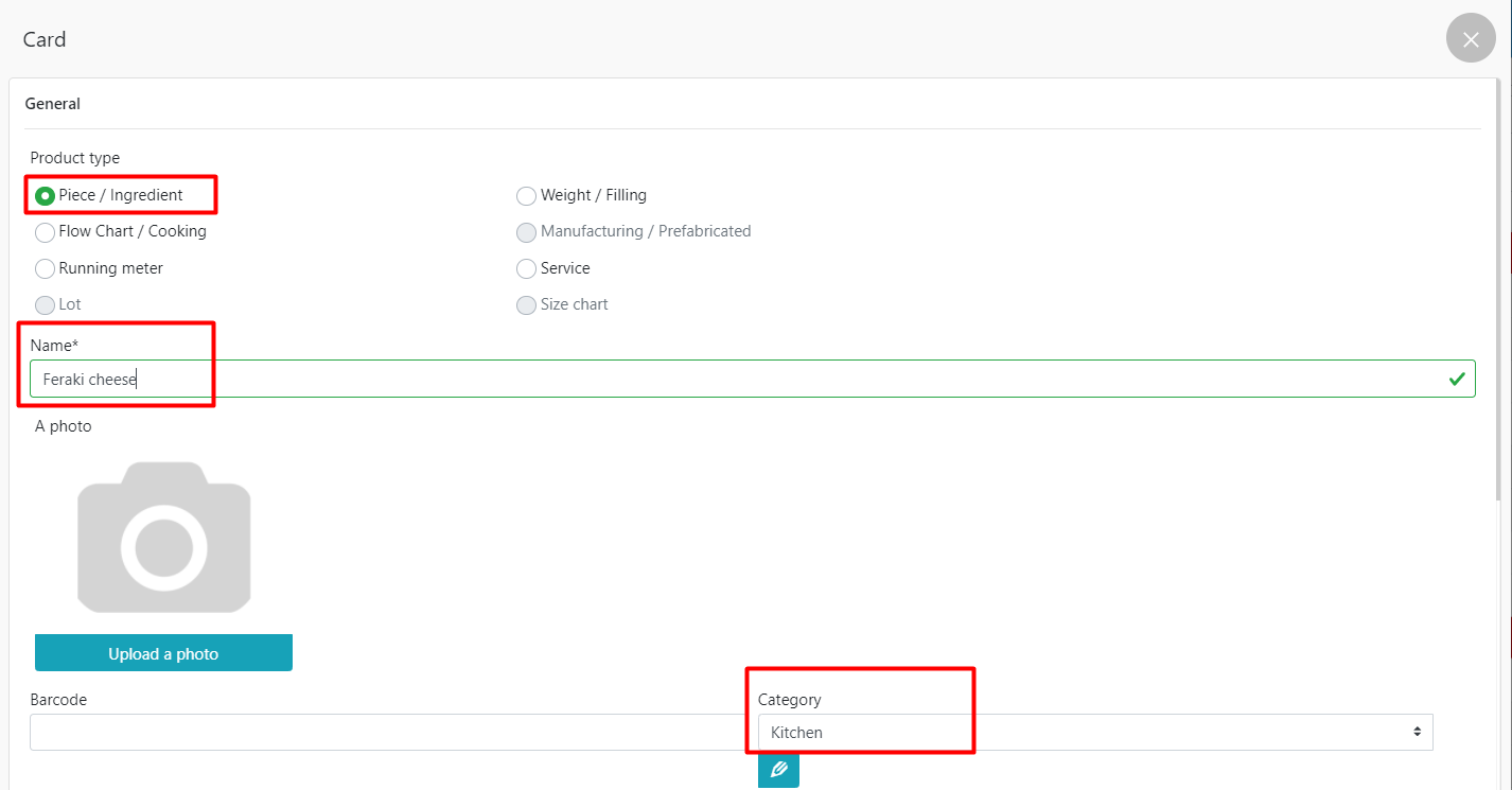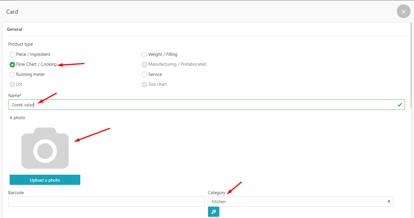 - 输入名称,选择类别并指定准备菜肴的工作室。