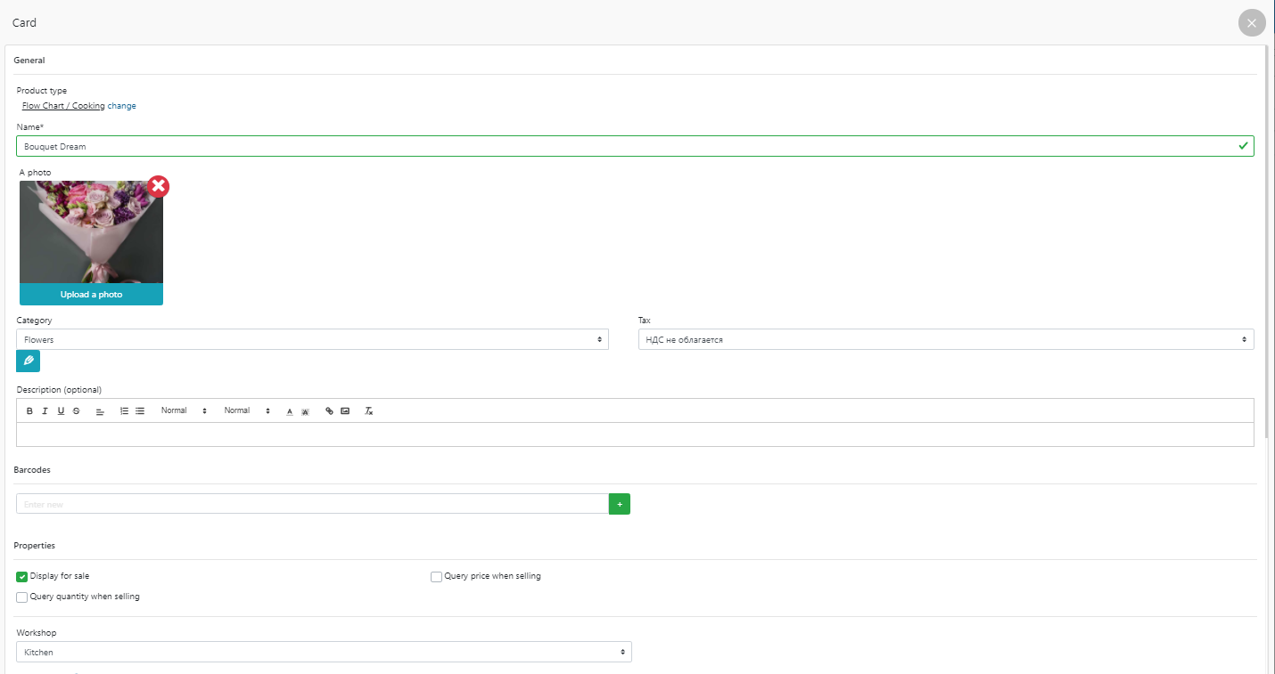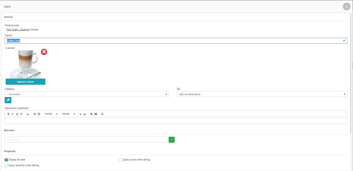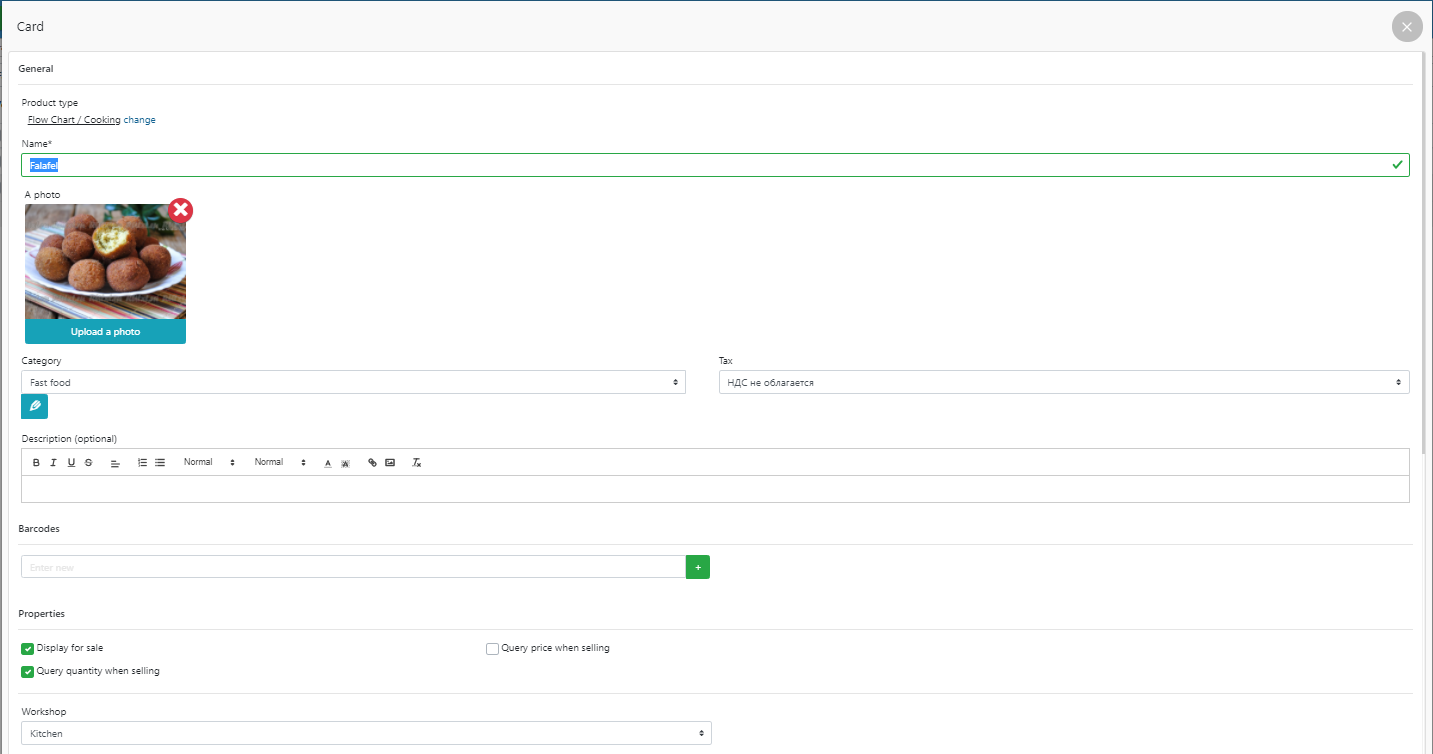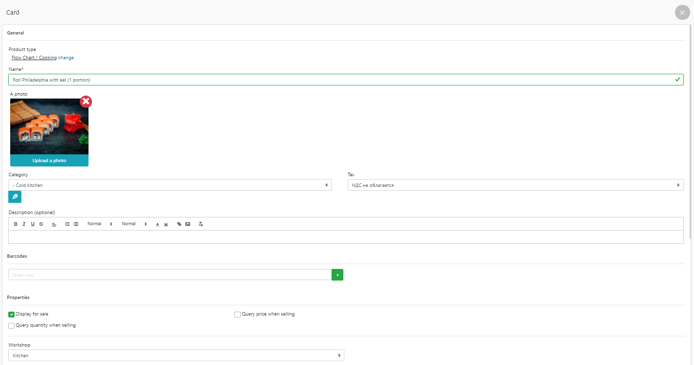 - 上传将在 POS 终端中显示的菜肴照片,并勾选待售显示。