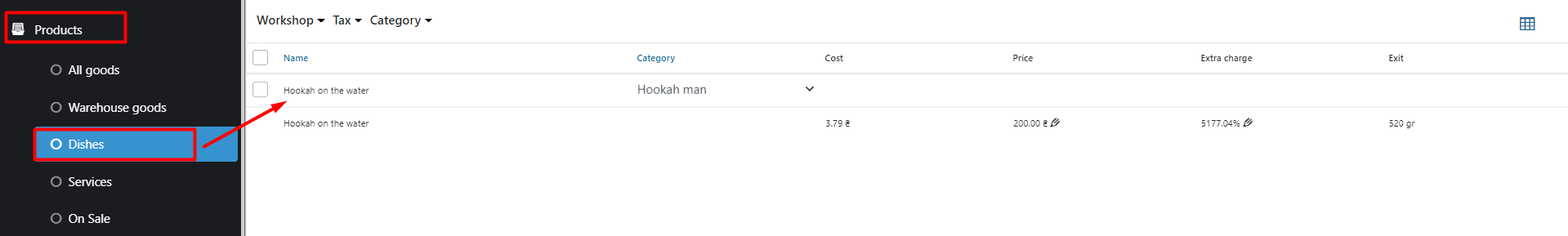 - 在管理面板中打开所有商品 → 菜肴。