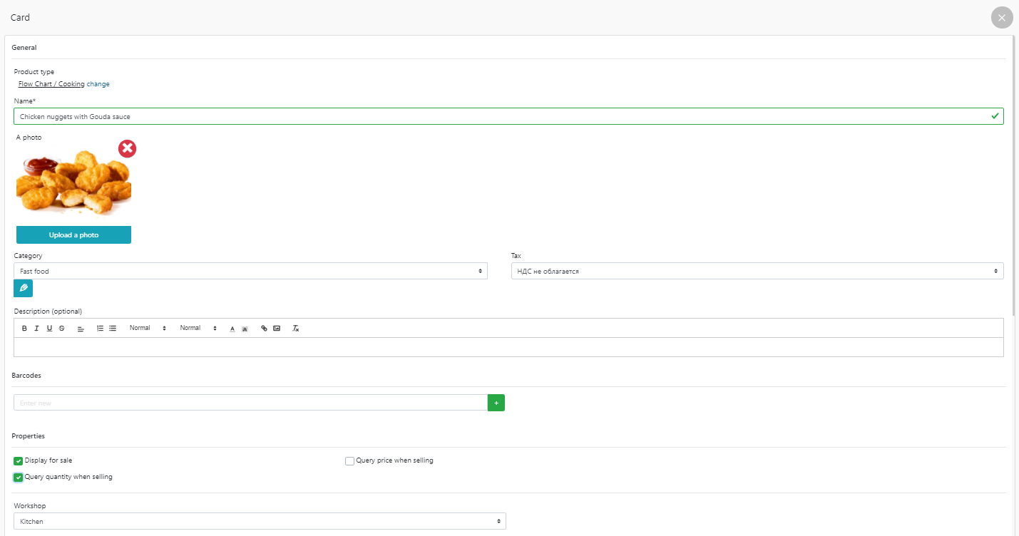 - 在 POS 终端出售带有豪达酱的鸡块示例