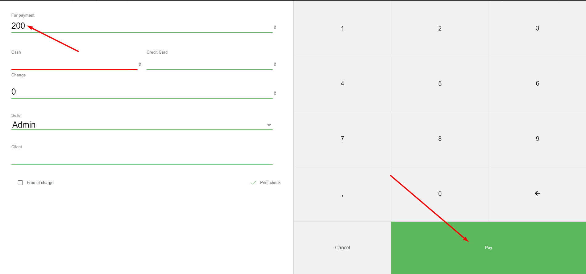 - 在哪里可以看到操作 240.00 之前的钱箱,以及生成的带有支票总金额的支票。