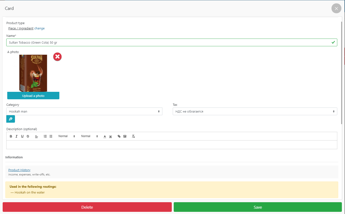 - 在 POS 终端的水上出售水烟的示例