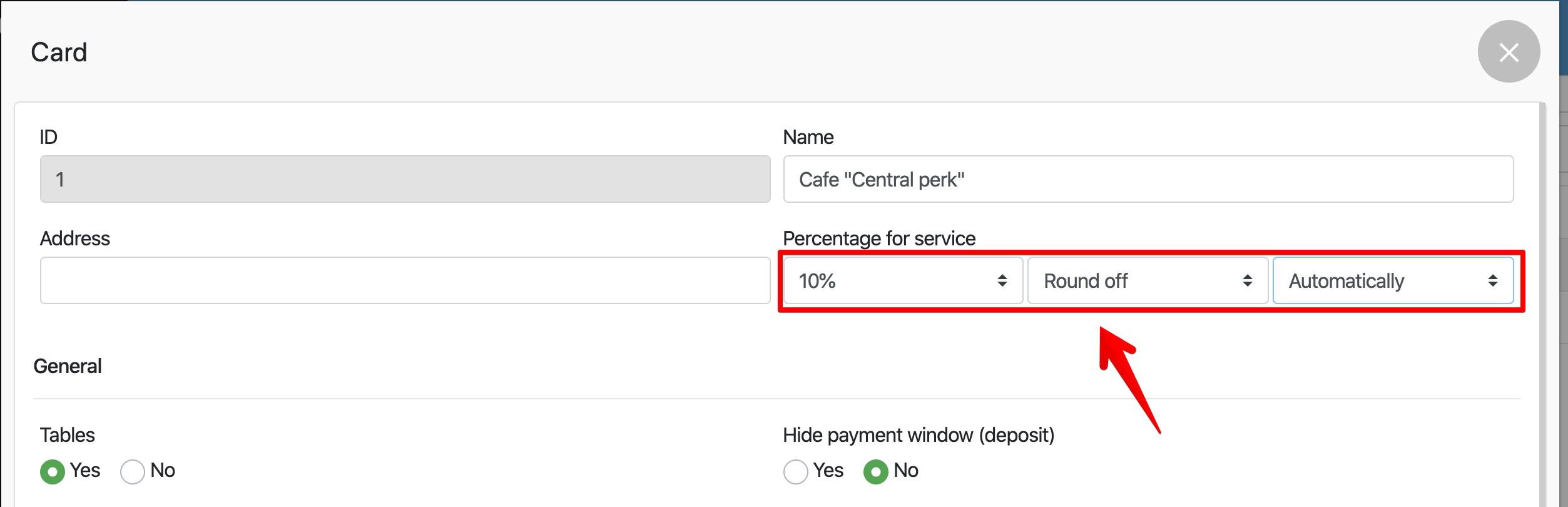 如何为服务添加百分比 在手动或自动模式下添加服务餐桌或宴会的百分比 在管理面板中,转到设置 – 销售网点部分 ,选择所需的点 (如果有多个) 在弹出的窗口中,选择: 服务兴趣 选择圆形/不圆形 选择功能模式手动/自动 点击保存 2 在 Pos 终端 选择“%服务” 您将在订单中看到“服务”字段 Read more: Related lessons 如何在 SkyService 中更改语言和货币 时间设定 多端 信贷期 如何创建一个帐户 Popular Lessons 如何制作 X 和 Z 报告 FAQ | 问题与解答 登记 如何添加产品(件) 不同类型活动的工作流详细示例