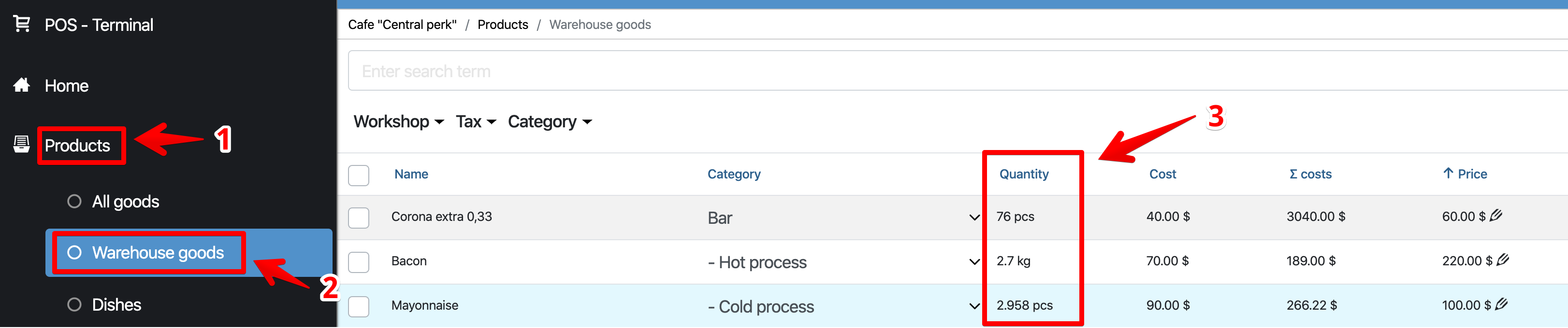 在哪里查看剩余库存 在管理面板中,转到产品部分 – 仓库货物 数量列显示剩余货物。 1 如何查看库存商品的数量 在管理面板中,转到统计信息 – 常规 在“统计”块中,单击“库存”字样,您将看到: 购买价格 – 所有商品成本的总和; 零售价 – 以销售价格计算的所有商品的总和。 Purchase and retail price of all products Read more: Related lessons 编辑运单 货物包装 仓库会计方法(如何计算成本) 如何在仓库之间移动 在哪里查看剩余库存 Popular Lessons 如何制作 X 和 Z 报告 FAQ | 问题与解答 登记 如何添加产品(件) 不同类型活动的工作流详细示例